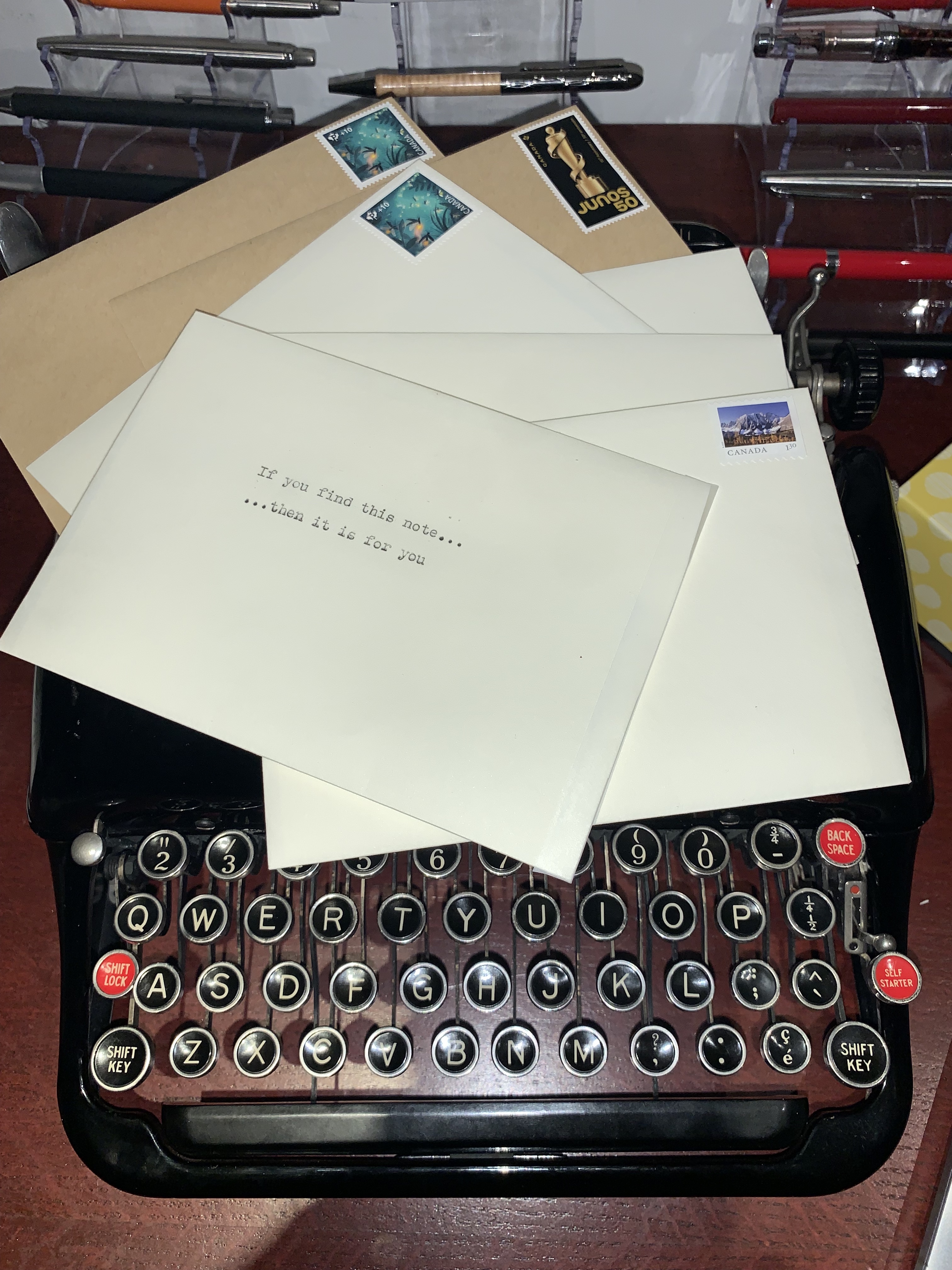 The Project involves sending typewritten letters of encouragement to someone who needs a little boost. The letter will arrived anonymously when they least suspect it…and I hope bring good feelings and encouragement. This is partially inspired by Josh Gondelman who regularly offers pep talks on his twitter feed. (check him out … @joshgondleman )