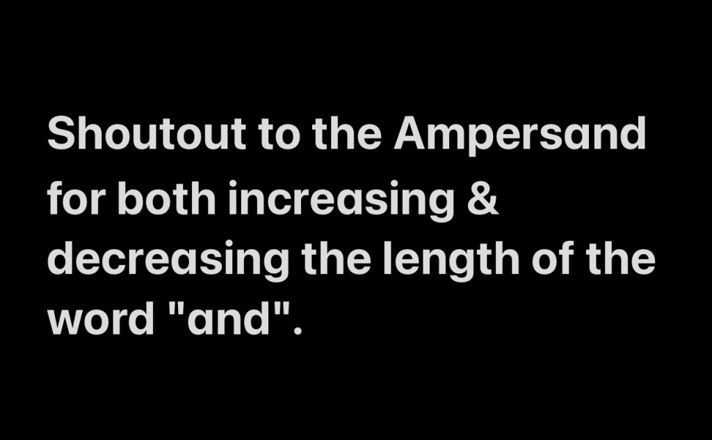 Shoutout to the Ampersand for both increasing & decreasing the length of the word “and”.