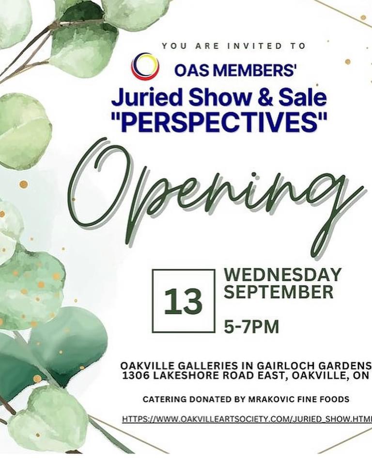 The show is Wednesday September 13 to Sunday September 17 from 10 am to 5 pm at Oakville Galleries in Gairloch Gardens, 1306 Lakeshore Road East in Oakville, ON.