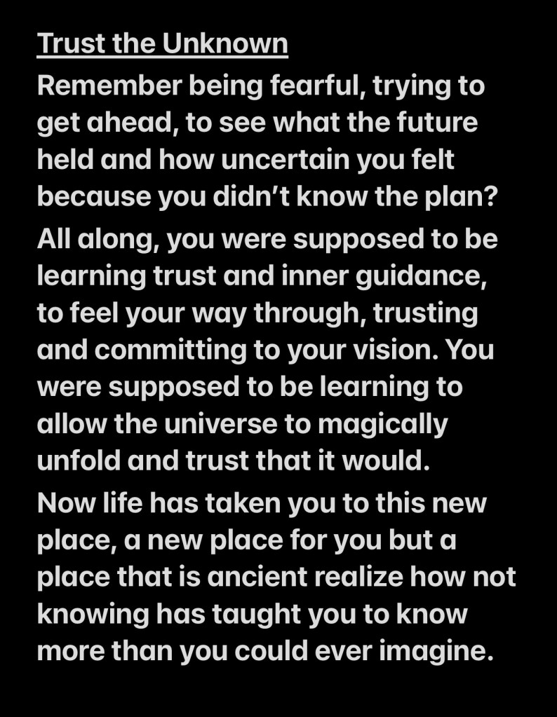 Now life has taken you to this new place, a new place for you but a place that is ancient realize how not knowing has taught you to know more than you could ever imagine