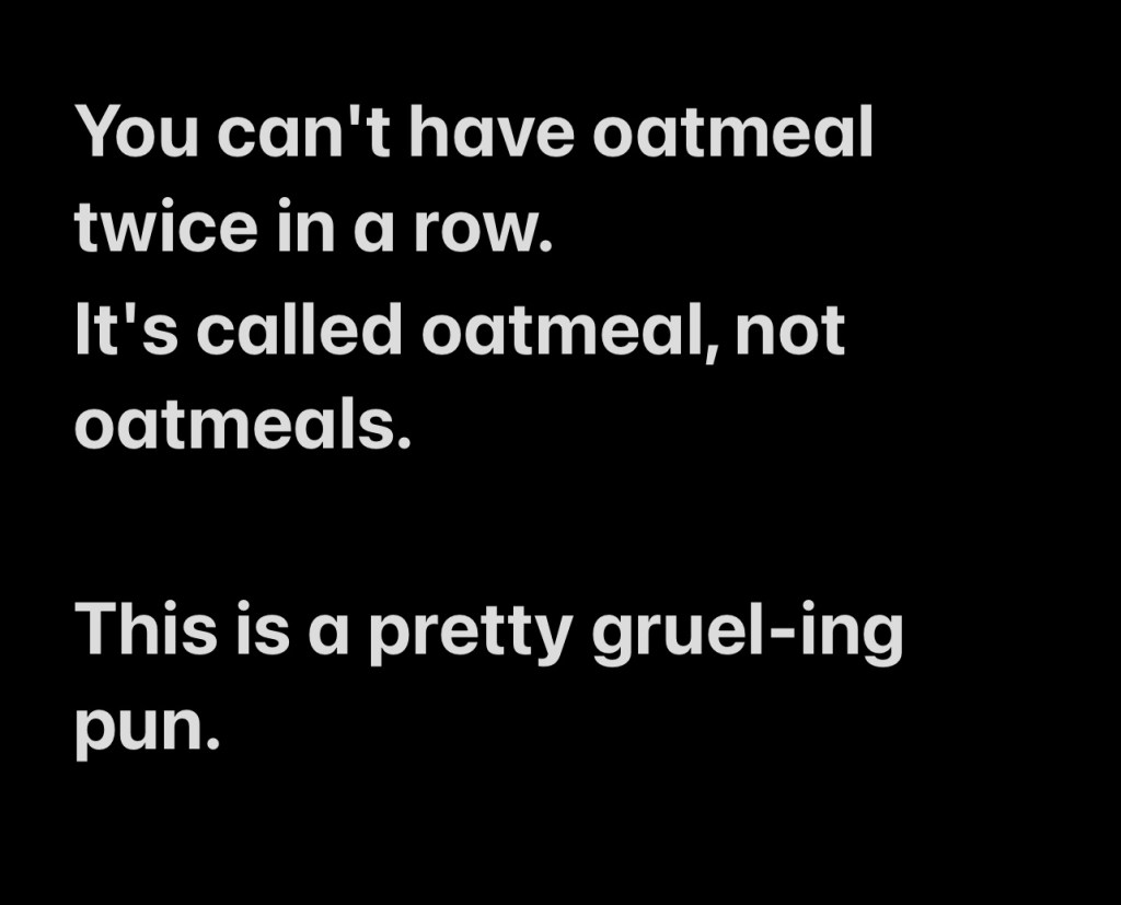 You can’t have oatmeal twice in a row.