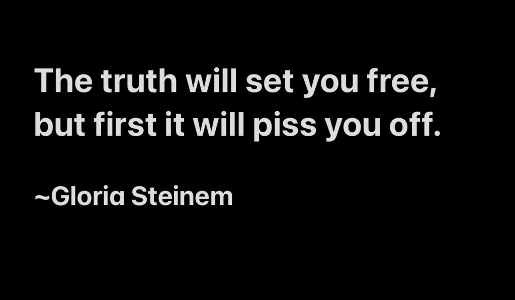 The truth will set you free, but first it will piss you off.~Gloria Steinem