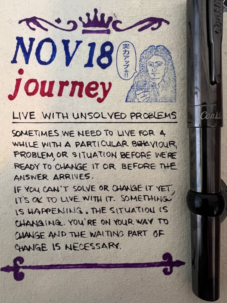 Sometimes we need to live for a while with a particular behaviour, problem, or situation before we’re ready to change it or before the answer arrives.