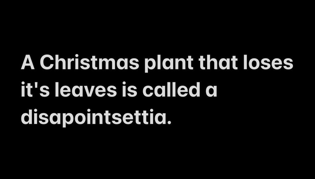A Christmas plant that loses it’s leaves is called a disapointsettia.