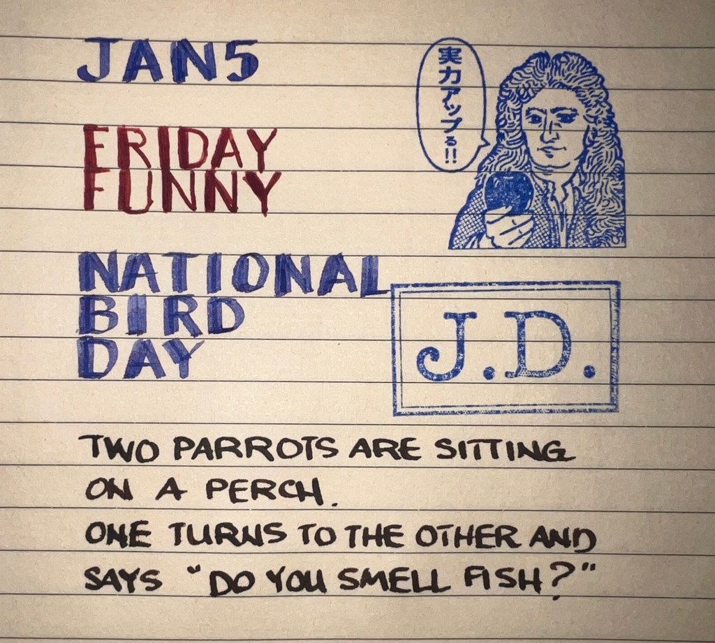 Two parrots are sitting on a perch.One turns to the other and says“Do you smell fish?”