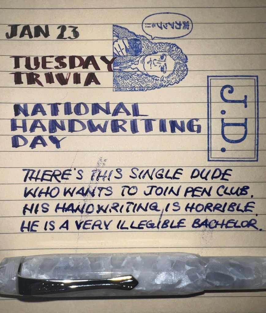 There’s this single dude who wants to join PenClub. His handwriting is horrible.