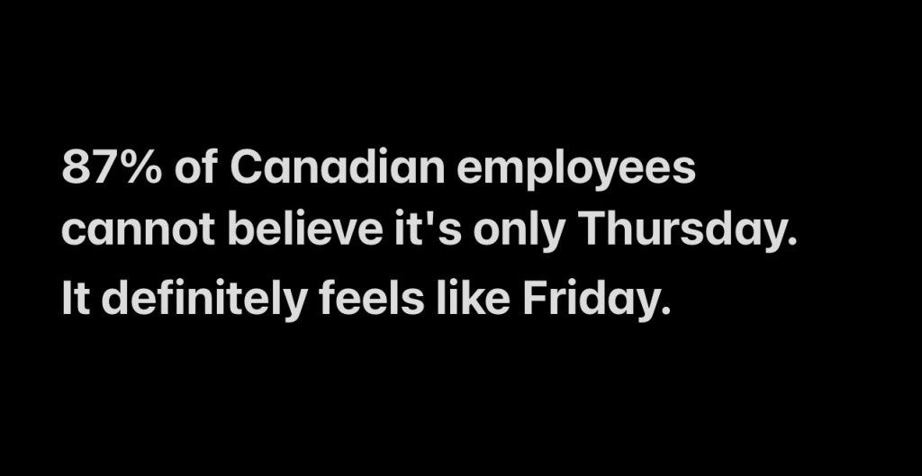 87% of Canadian employees cannot believe it’s only Thursday.It definitely feels like Friday.