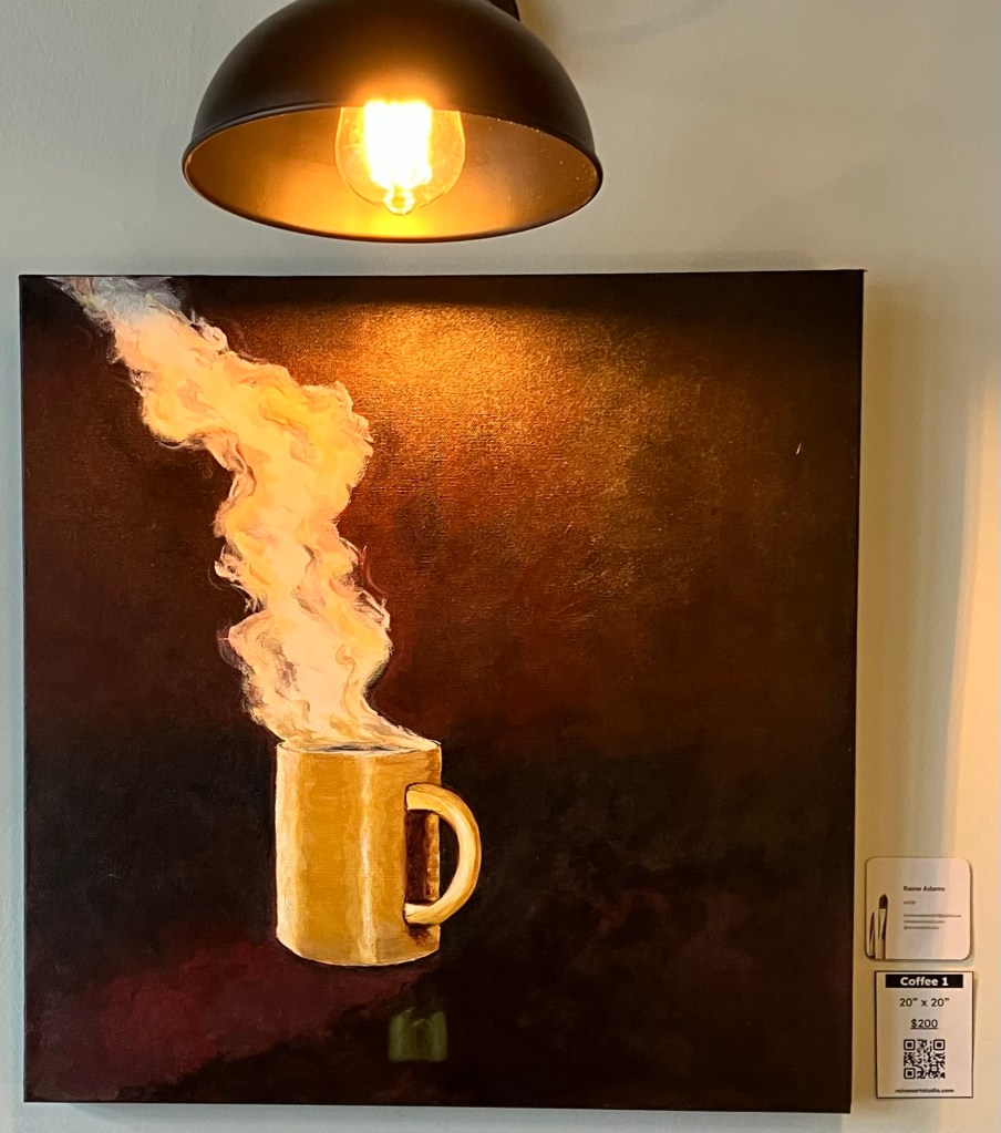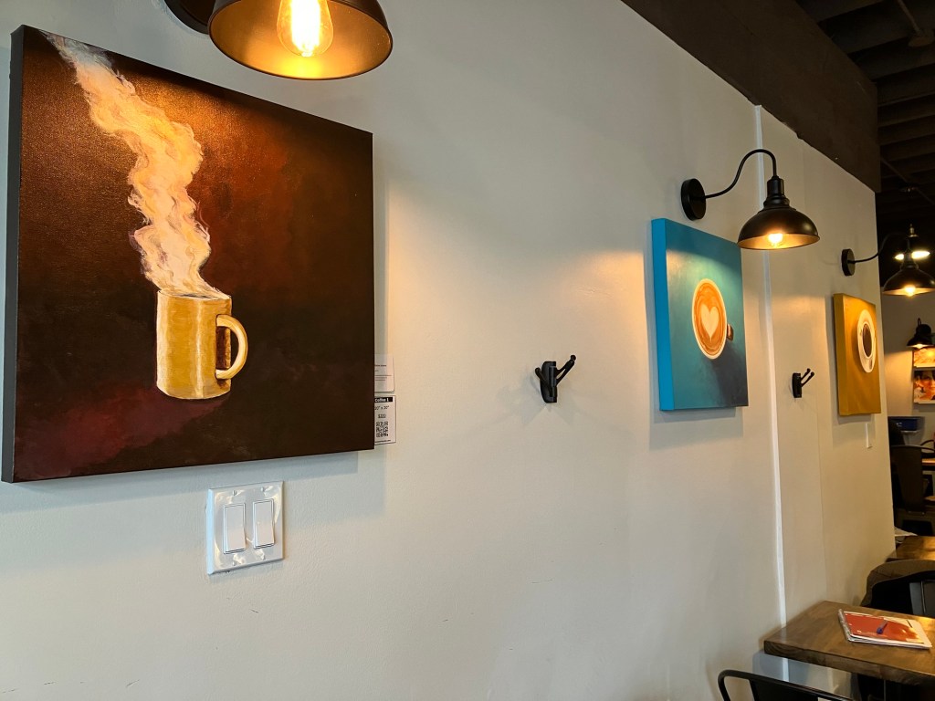 Three new pieces on display at Tribecca Coffee in Downtown Burlington.