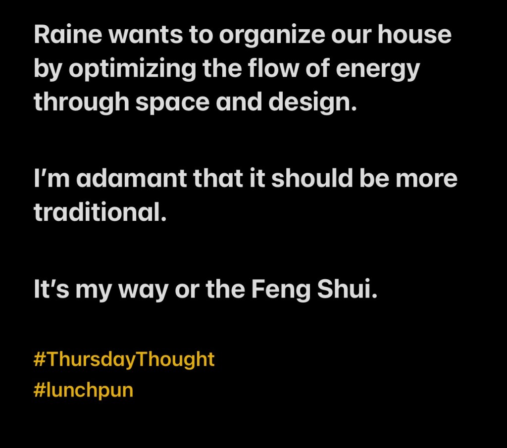 It’s my way or the Feng Shui.